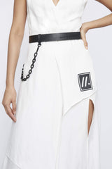 Description: this distinctive belt design is made from a high quality leather, making it robust and resistant to wear. The “battle” belt is perfect to be worn with both many different garments. It has a subtle velcro fastening enabling it to be adjusted to your exact waist size. The chain feature and embossed branding ensures that this belt is a unique designer find.